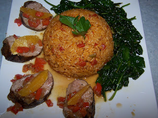 I promised this recipe a while ago when I made it with the Chocolate Chicken Mole. Sorry its taken me this long. Actually, I have tinkered with it since then and ramped up the heat by using Rotel instead of diced tomatoes. If you don’t like it spicey, just use the original recipe. The original recipe came from The Food Network’s Ingrid Hoffman. Here it is pictured with the Citrus Pork Loin I made a few weeks ago.