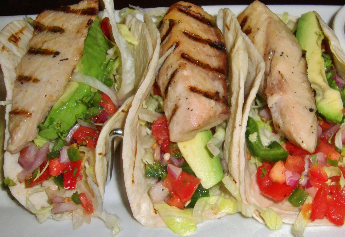 Mahi Mahi Fajita-soft tortillas filled with strips of grilled Mahi Mahi and fresh avocado, perched atop a   medley of red onion, tomatoes, bell peppers and jalapeños, excellent and strong entrée contender.