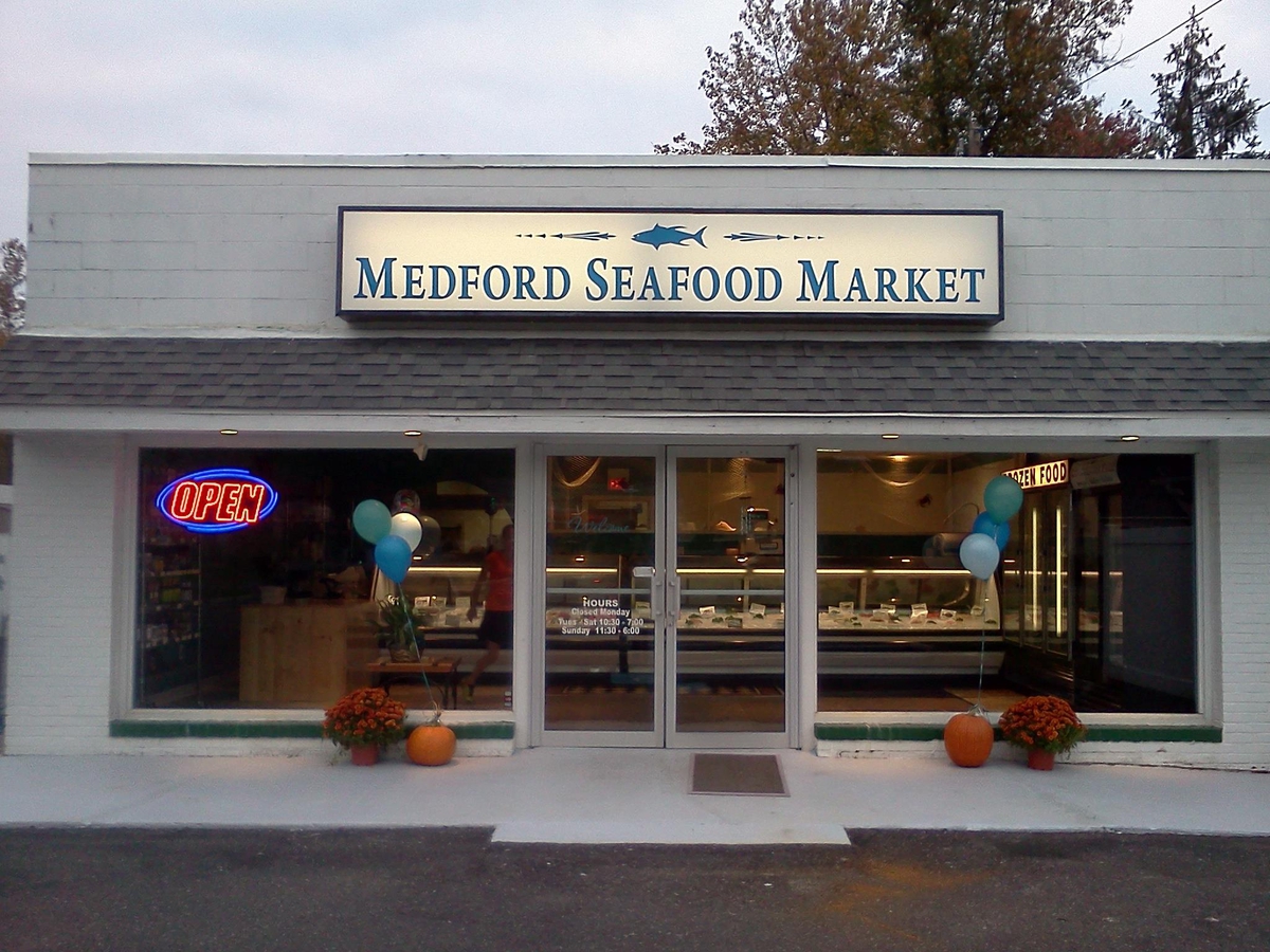 The new Medford Seafood Market is a seafood lover’s dream. On any given day fresh, high quality familiar fishes like flounder, tilapia, cod and haddock can be found along with specialty fish including sushi-grade yellow fin tuna, Chilean sea bass, Scottish salmon, Hawaiian butterfish and bronzini, a European sea bass.