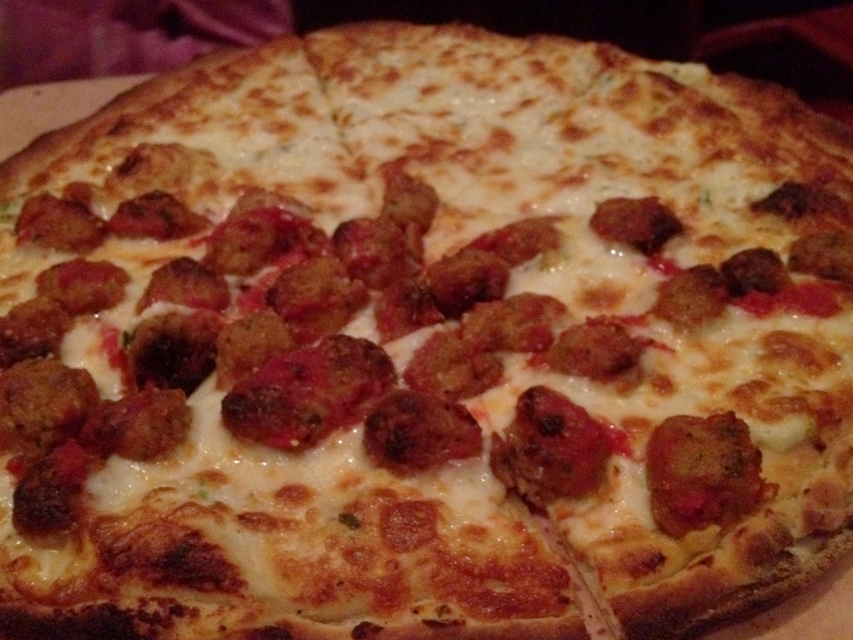 Broccoli Rabe and Sausage ($10.95) is delicious, another healthy portion which had everyone digging in. The Coal Oven Roasted Chicken Wings ($9.50 for 10 pieces) come under a topping of carmelized onion and served with Anthony’s ubiquitous Focaccia bread, hand made and baked off for each order. The wings aren’t Buffalo style and we appreciated their fresh, robust quality which showcased the chicken as opposed to a spicy sauce. The pizzas (starting at $12.25) are, according to the menu, “well done” which means they are both baked in an 800 degree coal oven, emerging with blackened blisters and a sublime taste thanks to simple, fresh ingredients that comprise both sauce and toppings. The Paul and Young Ron pie with Meatballs, Sausage, Hot or Sweet Peppers and Ricotta Cheese is a winner. If you want to keep it simple, the traditional won’t disappoint. I give Anthony’s a thumbs up for family and guy friendly vibe and menu offerings. This is fresh, tasty fare with an emphasis on quality ingredients.