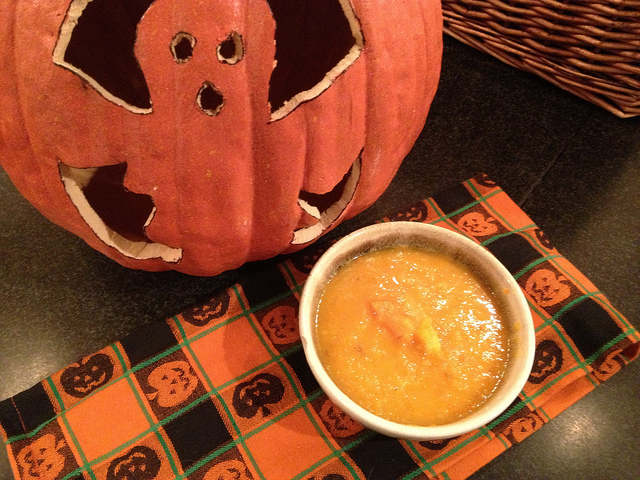 Orange Beet Borscht?! AAAH! EEEK! OK, it’s not that scary, actually red beet borscht would be awesome as blood for your vampire friends this Halloween. But, if you have more than just vampires and zombies coming, organic Orange Beets aren’t as scary to the beet shy. I know about these things, when I was young, you couldn’t get me anywhere near Borscht. No one could convince me that it wasn’t some ancient blood ritual passed down from generation to generation as a right of passage into adulthoood. If you ate it and lived, then you became a WOMAN(or MAN). It took me thirty years to try Borscht and of course I loved it. So, that’s why I think this Halloween you would be better off telling them it’s pumpkin soup! Otherwise they may take thirty years to try it and that would truly be Horror-able! I know that was lame, so sue me! It’s Halloween time, consider that a trick. Trust me, the Orange Borscht is a real treat!