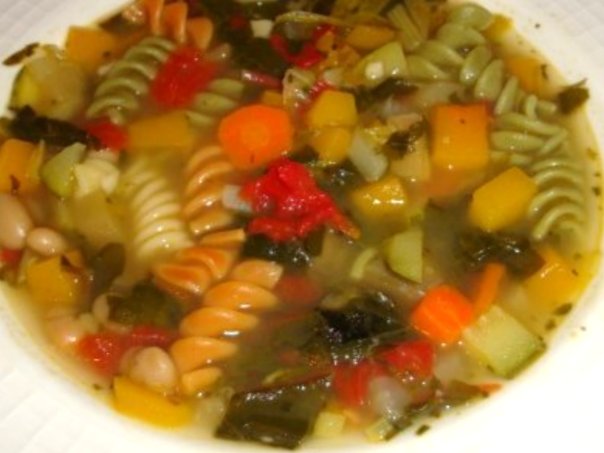 Add the green beans cut up small. Let simmer till tender another 5-8 minutes. Then add zucchini also cut in small pieces along with the swiss chard and balsamic vinegar. Cook about five more minutes till all veggies are tender but not overcooked.