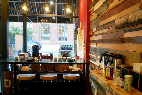 The coffee shop’s atmosphere is both welcoming and creative, with burlap coffee sacks doubling as fabric in the booths and on the pillows and artwork designed by Catskill artists. Goods line the shelves, including everything from five pound bags for those who need a bigger fix, to pouches and cup sleeves hand-made from coffee sack burlap.
