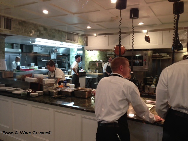 After the cocktail hour was finished, the group made its way into a very special space – the kitchen dining room. The richly-appointed room offers a table that can likely accommodate over 20 guests and an oversized window offering a perfect view of the bustling kitchen. Executive Chef Anthony Bucco and his team are focused and display a calm, quiet intensity I’d not experienced in a professional kitchen before. Very impressive.