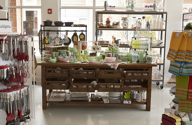 Upon entering the store for the first time, I immediately noticed the gorgeous wood dining table, with an exposed bulb lighting fixture. It was decorated with an eclectic display of dining and serving ware. The right side of the store is a carefully curated selection of kitchenware, offering shoppers many products and brands not available in typical retail chains. I had recently misplaced my favorite wine aerator – ok, I lost it, in my own home or maybe out. I don’t know, but I was in a desperate situation after drinking unaerated wines for weeks! To my delight and surprise they had the exact type I was seeking. I continued to browse, creating a mental check list called “I want ALL of this”. Someday, when I have a much bigger kitchen space, I know just where I’ll be going to stock it. Says Robinson, “We’re an alternative to department and kitchen stores. We’re bringing you stuff you can’t find other places and always introducing new products. We want to make shopping for kitchenware fun!”