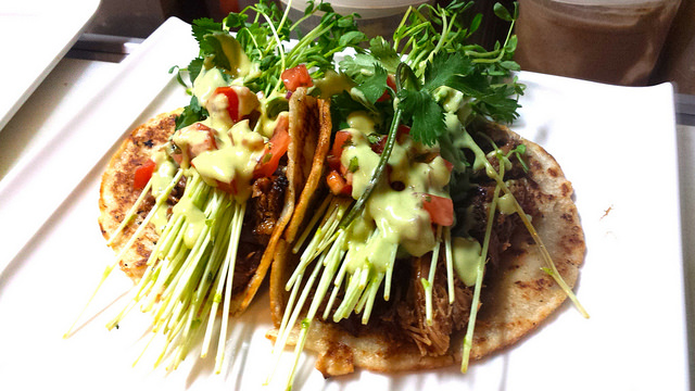 My personal favorite is The Bison, The Duck, and The Egg burger which features a grass-fed bison burger, cooked in duck fat, and topped with avocado and—what else? A cage-free chicken egg. The burger is perfectly cooked. The perfect bite is juicy, crispy, creamy, and yolky. All my favorite texture components. Or try out the Fresh-Grilled Tuna salad “taco.” The lettuce “taco” is just the right vehicle to get all that tuna in your mouth.