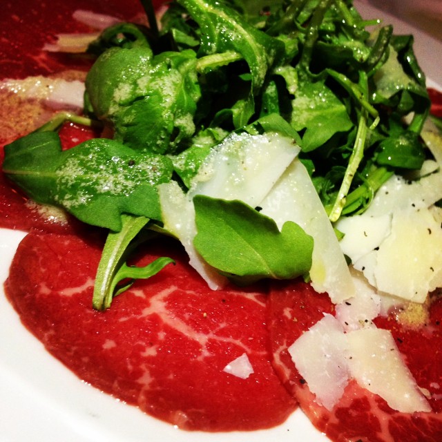 For our starters, my guest and I opted for classics: Spiedino alla Romano, think pan-fried grilled cheese with anchovy butter, and Carpaccio di Manzo, thinly-sliced filet mignon, baby arugula, marinated artichoke and truffle oil. Both were flavorful and set the tone for the fine meal to follow.