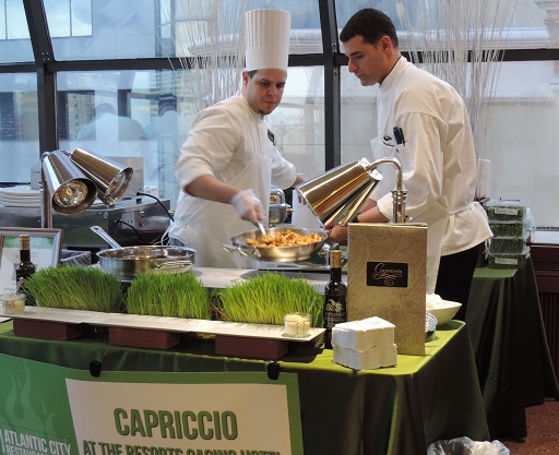 party held at the Claridge, the beautifully refurbished 1920s-era boardwalk hotel. Executive Chef Frank Mulino offered up his tasty meatballs al forno with creamy polenta, a dish to rival any Italian grandma’s. Executive Chef Rob Sartorio of the Grotto at the Golden Nugget suggests that Restaurant Week diners try his pork saltimbocca and his incredible cheesecake panzarotti: yes, that’s cheesecake wrapped in pizza dough and deep-fried, served with cinnamon sugar and strawberry sauce.