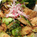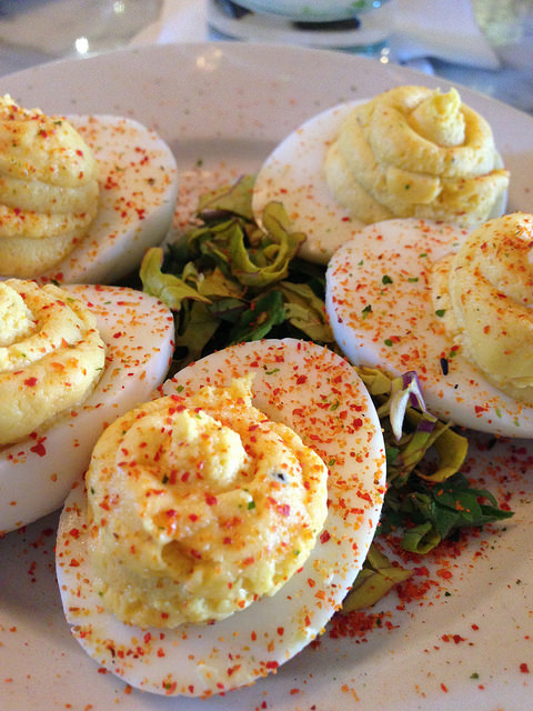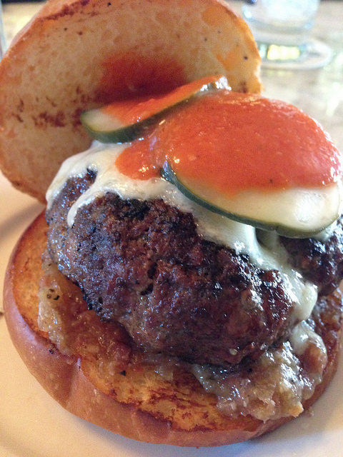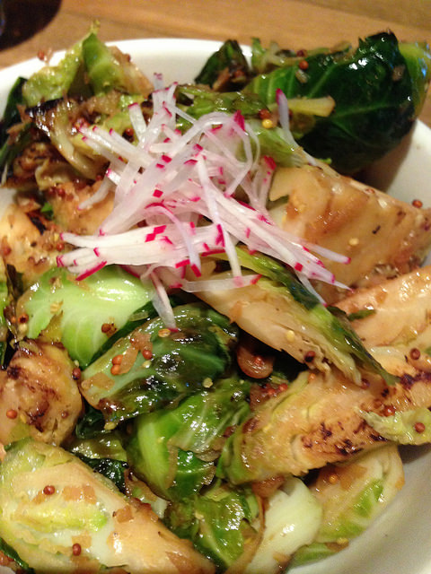 I spent a leisurely afternoon at Cowan’s Public a couple of Saturdays ago, soaking up the cool retro vibe, chatting with the two brothers who own the place, and enjoying the delicious food. This is not your typical bar food, my friends. There are no mozzarella sticks or onion rings on this menu. This is bar food kicked up a notch or two (or three). Exhibit A: What bar do you know that serves perfectly cooked pan-seared Brussels with a Champagne mustard vinaigrette and shallots? Exhibit B: Chipotle deviled eggs (lusciously creamy with slight heat at the back). And a kickin’ burger with bacon-onion jam, sharp white cheddar, house-made pickle, and sriracha on a Balthazar brioche roll! I rest my case.