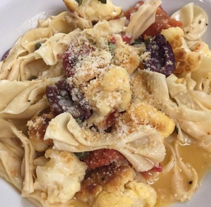 First up, the mushroom tart. (When you’re dining at Porcini, you must eat porcini!) A flaky tart, warm goat cheese, shallots, an array of mushrooms, topped with a drizzle of balsamic glaze and a hefty helping of arugula. I was in heaven. According to our server, it’s a fan favorite and I can see why. For our main courses we ordered the farfalle pasta dish with spicy cauliflower, tomatoes, capers, and olives in a garlic-parmesan broth and the tagliatelle with pomodoro sauce and ricotta cheese. A classic. If you screw this up, there’s no coming back in my book.