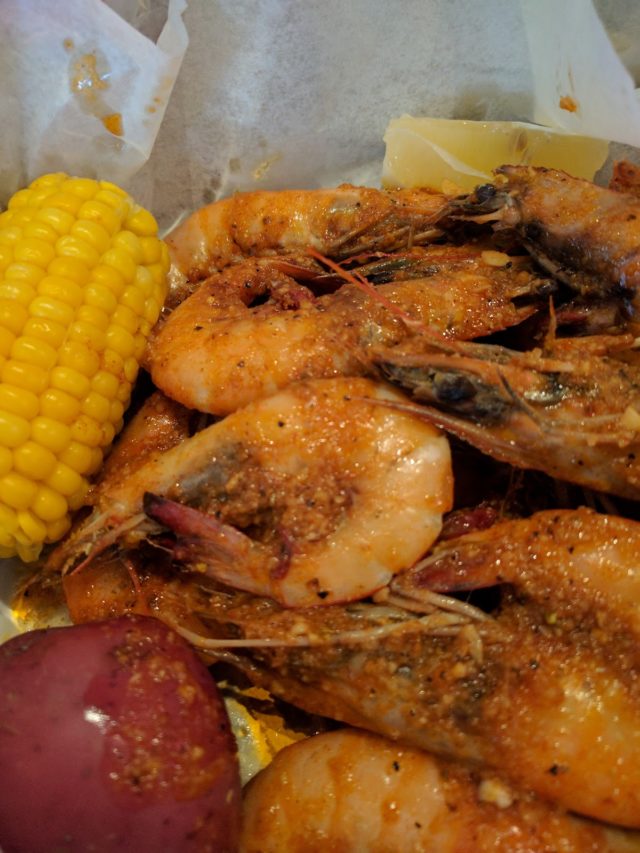 I decided on shrimp coated in the Boiling House special, which blends lemon pepper, Old Bay, Cajun, and garlic butter sauces into one flavor-packed mix. The shrimp come whole, with the heads and tails still on, as Mei said cooking them this way adds a lot of flavor to the dish. While I erred on the side of caution with a medium level of spice, my husband opted for Dungeness crabs smothered in a hot Boiling House special sauce. As we expected, his crabs had a bit more heat to them than my shrimp. He sniffled a bit from the spice, but said it was a perfect level of heat for his tastebuds.