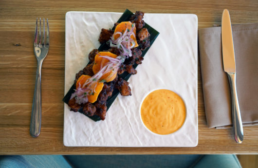 Our friendly and knowledgeable waiter, Jimmy, started us off with warm pan de bono paired with a sweet and spicy guava and sriracha butter. Like much of the menu, the luscious cheese bread reflects Garces’ Ecuadorian roots; it’s “something that my mom and my grandmother always made for me. I would wake up with that aroma.”