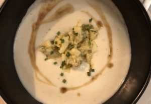 We began our low country feast with an order of hush puppies, complete with a side of vinegary Comeback Sauce—a fixture of southern dinner tables. They reminded my dinner date of “airy clouds that you could actually eat without clogging your pores.” I concurred, happy to eat a fried dish without feeling weighed down. A bowl of a vegan Not Quite Crabby soup followed, leaving us absolutely dumbfounded when we found out that the topping, which we could have sworn were actual pieces of crab, was actually made with sherried palm hearts.