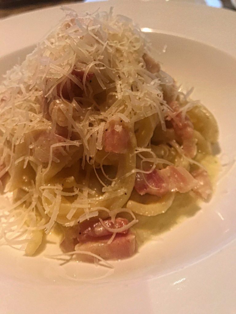 Housemade spaghetti, smoked pancetta, egg, Pecorino Romano, and fresh cracked pepper