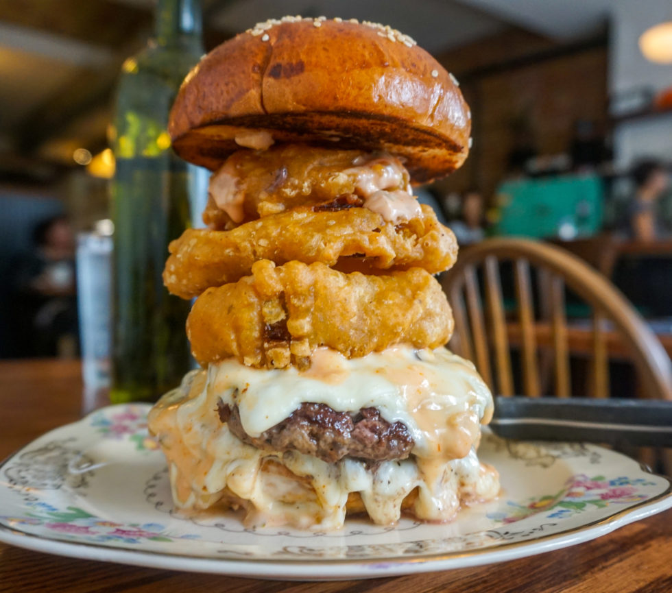 The pride of the Ironbound in Newark, Krug’s Tavern dishes out a no-nonsense, monster-sized 12-ounce patty burger with the option to add cheese and/or bacon. Cooked perfectly every time I’ve been there and full of juice! They’ve been around since 1932, the history of this place alone gets major props in the burger community.