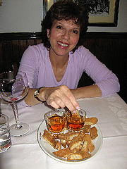 We ordered two of their flagship ZinBurgers (Manchego cheese, Zinfandel-braised onions, and mayo), but just to see if the kitchen would balk at a change in a standard menu item, one was ordered without mayo. No problem. So let’s get right down to it: this has to be one of the best burgers I’ve ever had. Cooked perfectly, according to my request of rare (with a nice caution from the waiter that it would come out with a warm pink center), incredibly juicy, fabulous onions, and delicious Spanish Manchego (a nice change from the usual cheese offerings). The burger is served on a light Brioche bun and is fairly priced at $10.