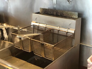 The diner, a modified truck trailer, is known for its chili dogs — a favorite among the many truck drivers, firefighters, utility workers, and police officers who frequent the place. The hot dog preparation is straightforward: First they go into the deep fryer, followed by a quick sear and sizzle on the flat-top grill.