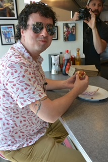 This reporter recently met with New Jersey hot dog connoisseur and YouTube video star Mark Neurohr-Pierpaoli at the Bayway. It was a most-convivial culinary encounter and we indulged in chili dogs and sparkling conversation on diner history, all of which is documented on Mark’s online program, I Never Sausage a Hot Dog. “Johnny Prince and his family’s secret recipe have perfected the art of hot dog chili,” Mark declared. “It’s the best I’ve had yet, and I’ve had my fair share.” He has penned several articles for Jersey Bites as well.