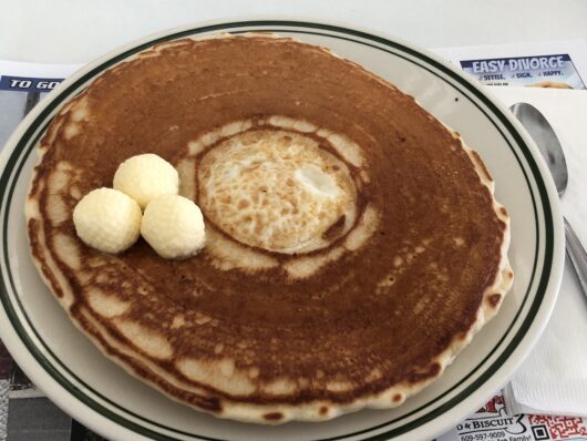 The choice this day was a Mustache Bill classic creation called the Cyclops: two fluffy, delicious pancakes crowned with medium eggs in the center. Bacon on the side? Sure. Multiple cups of coffee? Of course. Convivial conversations with fellow customers? Absolutely. What else would you expect at the best vintage, modular, prefabricated diner in the Garden State?