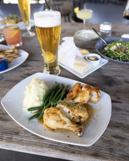 Menu items are often served with house-pressed juice, homemade iced tea, lemonade. Craft drinks are also available in cocktail form. Of course, no menu is complete without a perfectly crafted burger. The restaurant’s staple smashed patties often make regulars out of newcomers. And we hear customers can’t get enough of the grilled hanger steak frites with green beans, hand-cut fries, and a dipping aioli.
