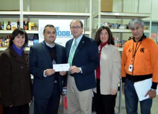 New Jersey Secretary of Agriculture, Douglas H. Fisher, presented a $6,458 check to the FoodBank of Monmouth and Ocean...
