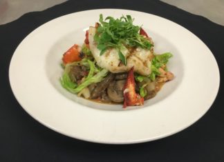 Wild Striped Bass with Maine Lobster and Wild Mushroom Ragout
