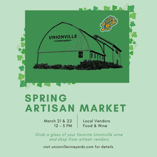Local artisans will be lining our tasting room barn on March 21 and 22, 12-5PM. Live music and food each day. Wines available in tastings, flights, by the glass, bottle, or case to go. Grab a glass of your favorite wine and shop from local vendors! Music and food soon to be announced.