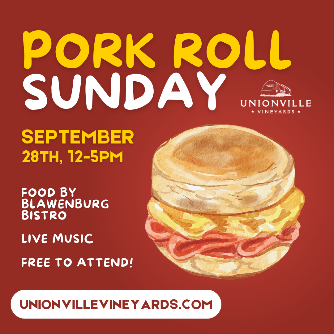 Unionville Vineyard 9 Rocktown Rd, Ringoes, NJ, United StatesPork Roll Sunday comes to Unionville on September 28th, 12-5PM! Celebrating a New Jersey delicacy, join us on property as Blawenburg Bistro makes fresh pork roll sandwiches. Live music on […]