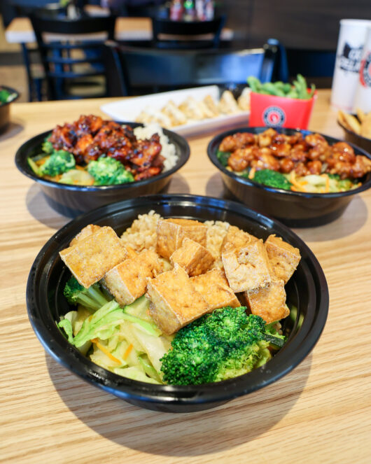 Customers looking for vegan, vegetarian, and/or gluten-free food choices will find options available at Teriyaki Madness. “It’s great for multiple audiences,” said Santarelli. “It was very appealing to us because the menu is slanted toward gluten free—which is something my wife and I seek when we go out dining as well. And there are options for no meat—we have tofu, and we have salmon.”