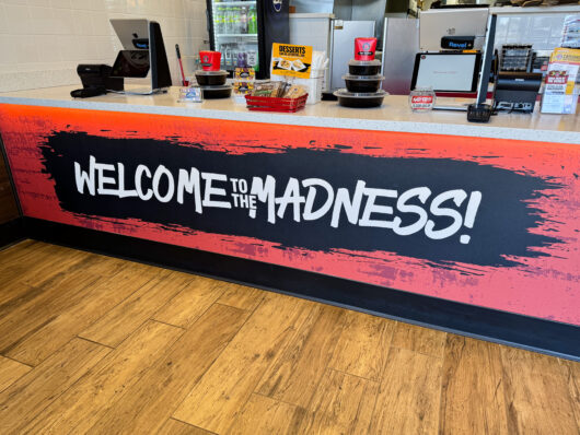 Teriyaki Madness also provides ordering for curbside pickup through its app, what they call: “Mad Dash.” “It’s essentially drive thru without the drive thru,” said Santarelli. “Customers order ahead, we see on our iPad the progress of their vehicle coming, and we take the order to their car at the curb. Just download the app and select ‘curbside’ for the Mad Dash experience.”
