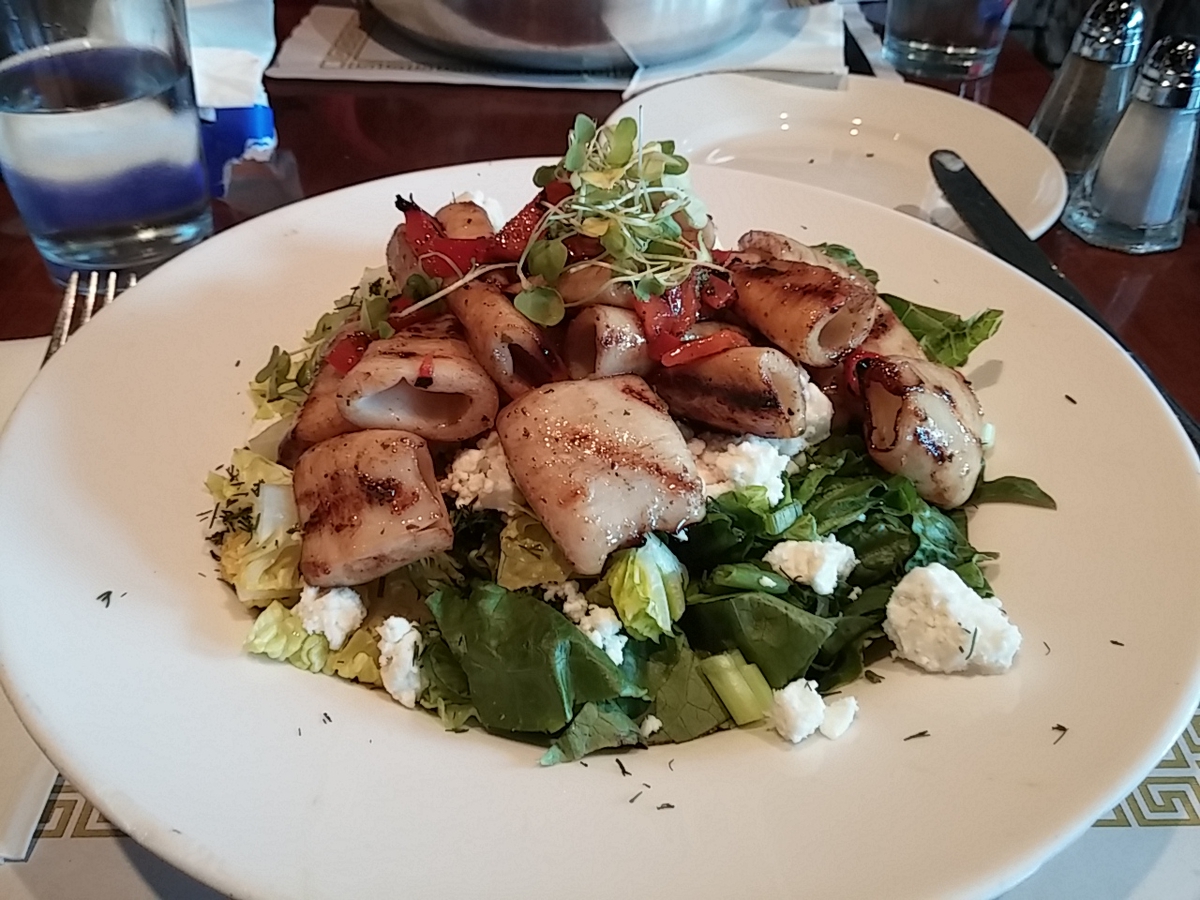 The menu features the usual Greek dishes, but here you have a chef-owned restaurant with the actual chef in the kitchen. Mourelatos is a true artist: you can see how he goes beyond the usual in his exquisite presentations, including edible flowers in his Greek salad and real Greek yogurt in his Tzatziki dip—not sour cream like some other places. He does many  vegetarian dishes, such as meatless Mousaka with layers of eggplant, potatoes, zucchini and bechamel sauce.  The most incredible chicken Avgolemono soup, better than any  Greek around including in NYC.  His grilled octopus is out of this world, marinated, tender and oh-so-flavorful, with quality olive oil, fresh herbs, and chopped roasted tomatoes. The menu included the usual gyros, shish kabobs and platters, but all of these are a step above anywhere else, with large portions of perfectly grilled meats, chicken, and veggies. The platters include a choice of salad or soup. There are plenty of choices for the meat eater, vegetarian, or vegan.  All dishes are done on the spot with tender loving care by Chef Themis himself. And within minutes of serving the food, the chef will come out and ask how it is. I think he knows.