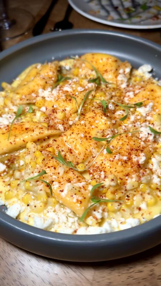 @thehungryytraveler says: “This dish is flavorful and light, I would have never thought to make street corn pasta but it’s amazing! The agnolotti pasta complements the cream sauce so well.”