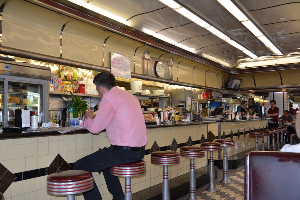 Georgia Gremanis, who owns and operates the diner with her family, was in a jovial mood and good spirits as she waited on us, demonstrating her mischievous sense of humor. “Are you ready to order?” she asked. “I’m ready,” I declared, straightening my shoulders. “Ah, men are always ready,” she quipped, waving her hand as if to flag her more-than-obvious double entendre. As we talked, there was a pleasant surprise; Georgia smiled when her good friend and loyal customer George arrived with a floral arrangement for her.
